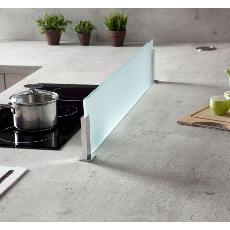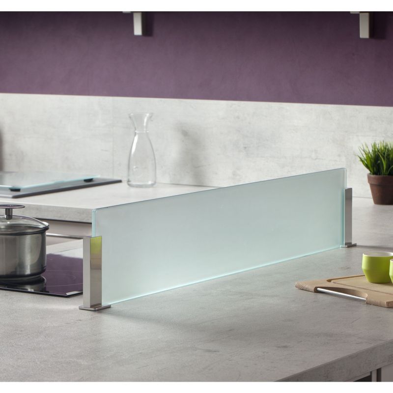 Kit séparateur îlot verre satiné - 900x170mm - Avec 2 supports chromé - Verre trempé ep.8mm - Fixation double face