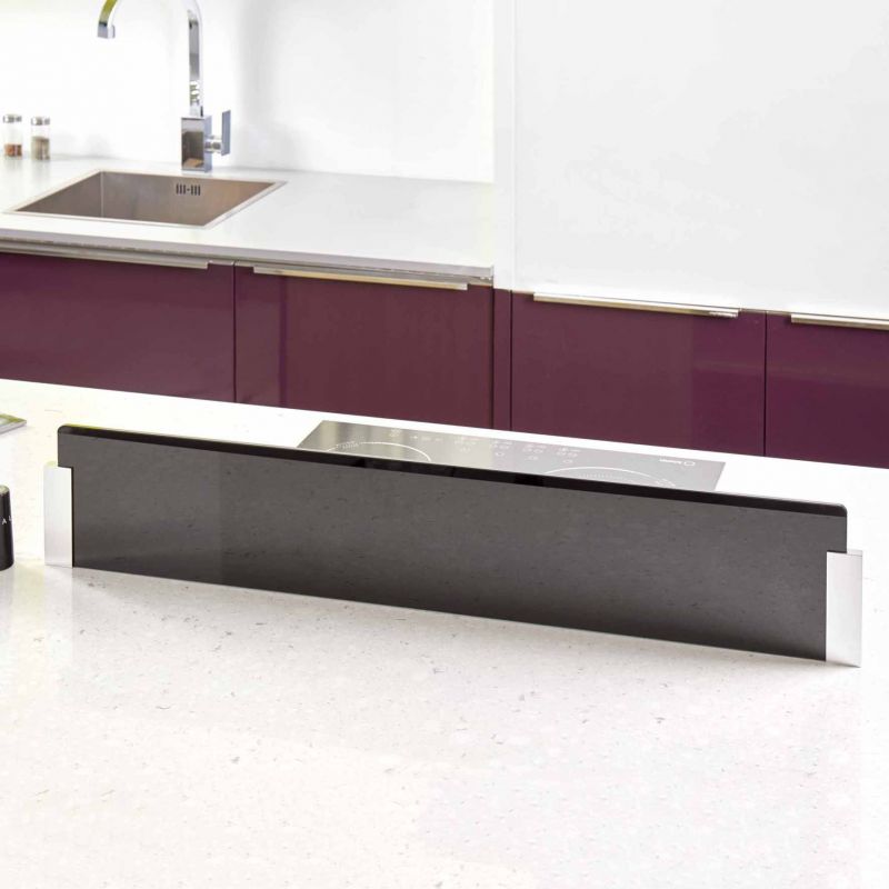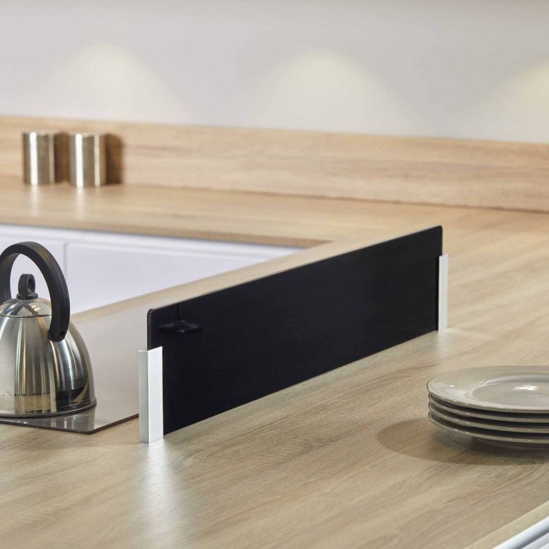 Kit séparateur îlot verre noir - 900x170mm - Avec 2 supports chromé - Fixation par vis