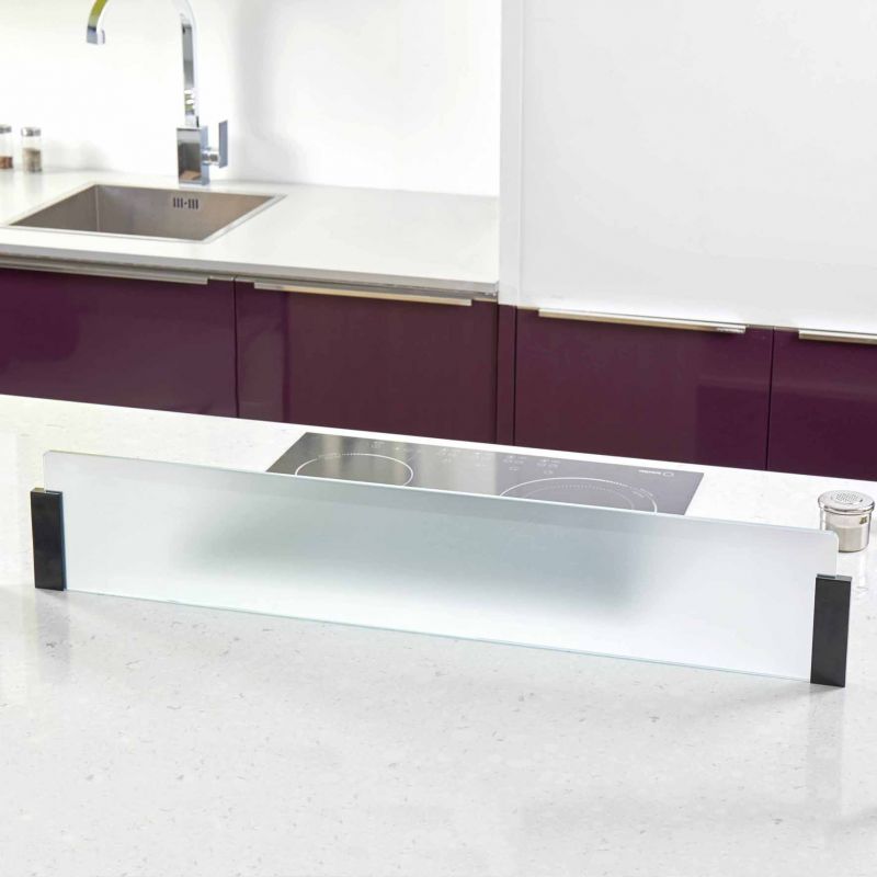 Kit séparateur îlot verre satiné + 2 supports noir - 900x170mm - Fixation par vis