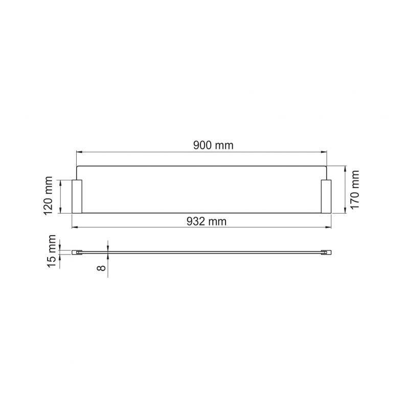 Dimensions verre : H. 170 mm l. 900 mm épaisseur 8 mm