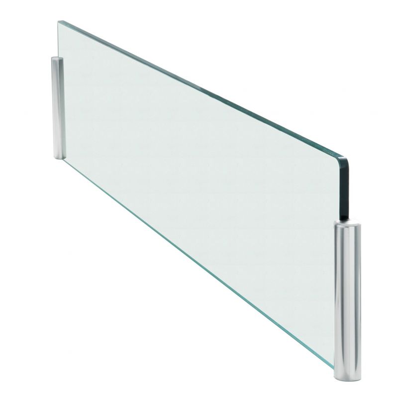 Kit séparateur îlot - Verre trempé transparent + 2 supports rond chromé - 600x170mm - Ep.8mm - Fixation sous plan