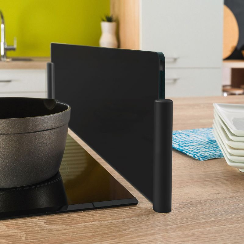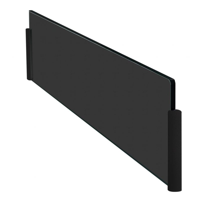 Kit séparateur îlot - Verre trempé noir opaque + 2 supports rond noir mat - 600x170mm - Ep.8mm - Fixation sous plan