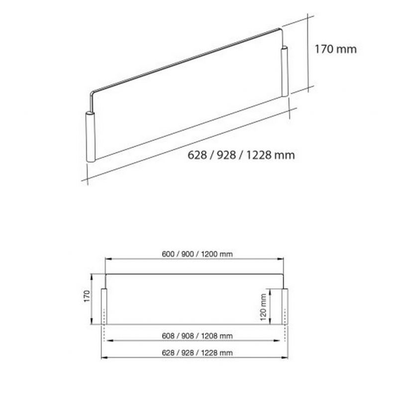 Dimensions verre : H. 170 mm l. 900 mm épaisseur 8 mm