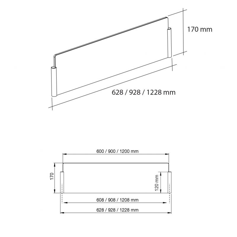 Dimensions verre : H. 170 mm l. 1200 mm épaisseur 8 mm