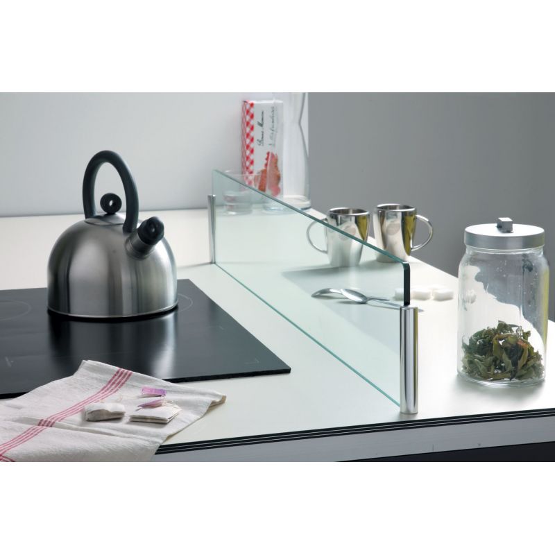 Lot de 2 supports rond chromé pour séparateur d'îlot en verre - Fixation sous plan