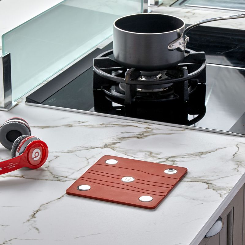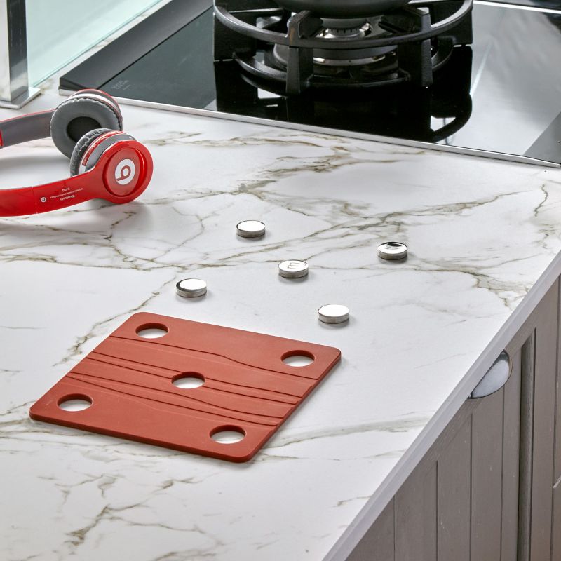 Repose-plat aimanté Rouge "FIVE" - 180x180mm - Dessous de plat silicone - 5 plots de 25mm diamètre - Fixation double face