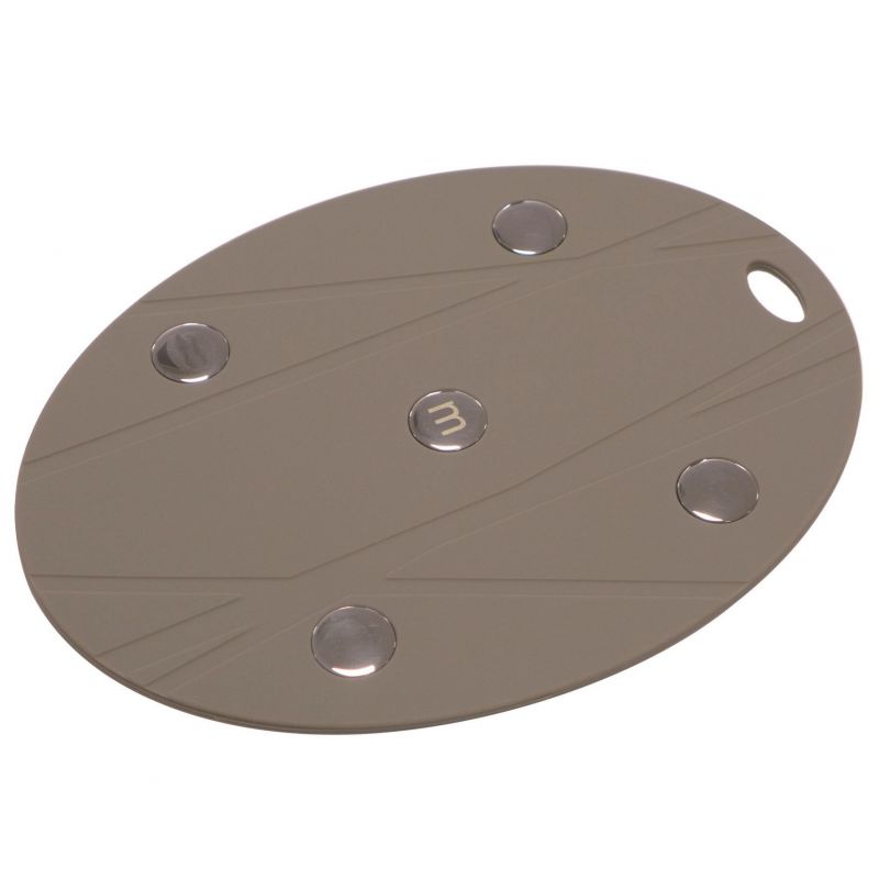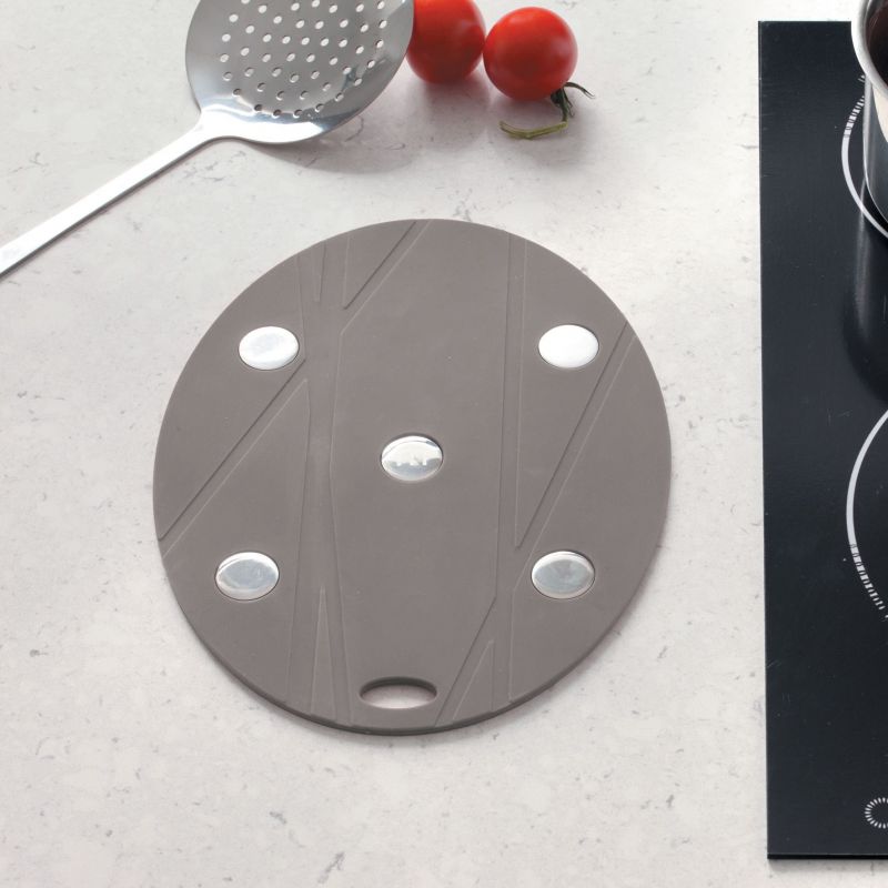 Repose-casserole "2en1" taupe - 210x280mm - Dessous de plat en silicone - 5 plots de 25mm diamètre en métal chromé - Pose sans usinage