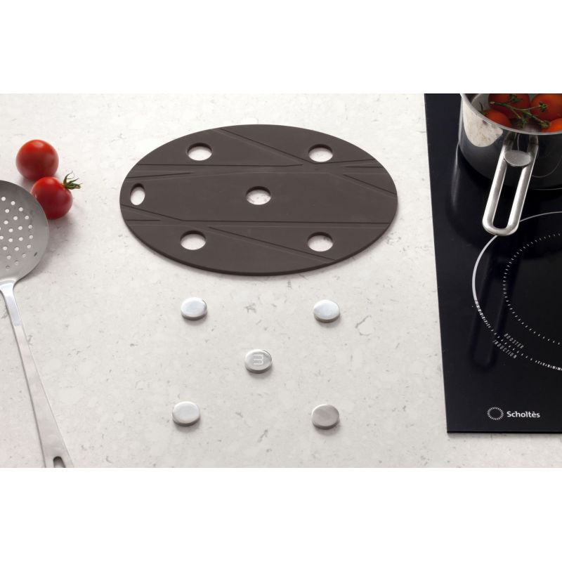 Repose-casserole "2en1" taupe - 280x210mm - Dessous de plat en silicone + 5 plots de 25mm diamètre chromé - Pose sans usinage