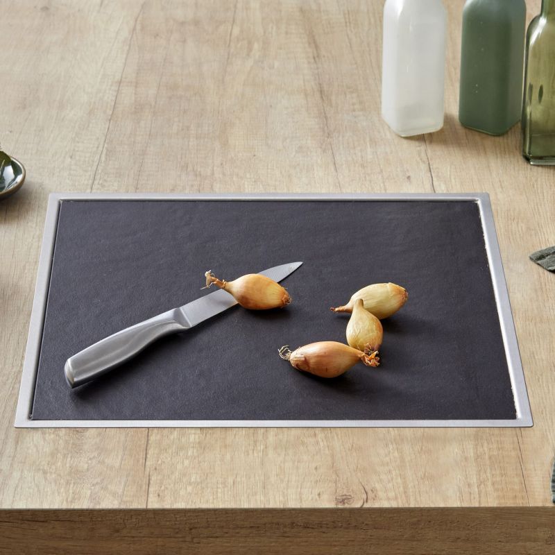 Planche à découper - Cadre en inox ép.0.8mm - Plaque de DEKTON Noir 372x322mm - A encastrer
