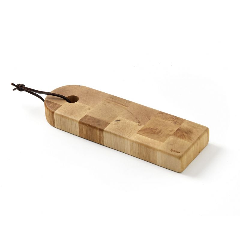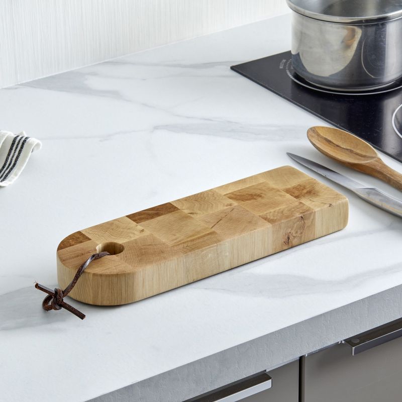 Planche billot - Charme en bois de bout- 300x100x30mm - Fournie avec lanière en cuir