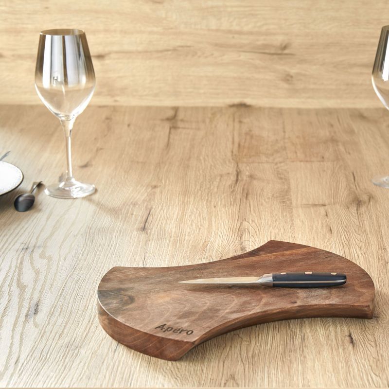 Planche de présentation "Apéro" - Noyer - Forme arrondie 33cm