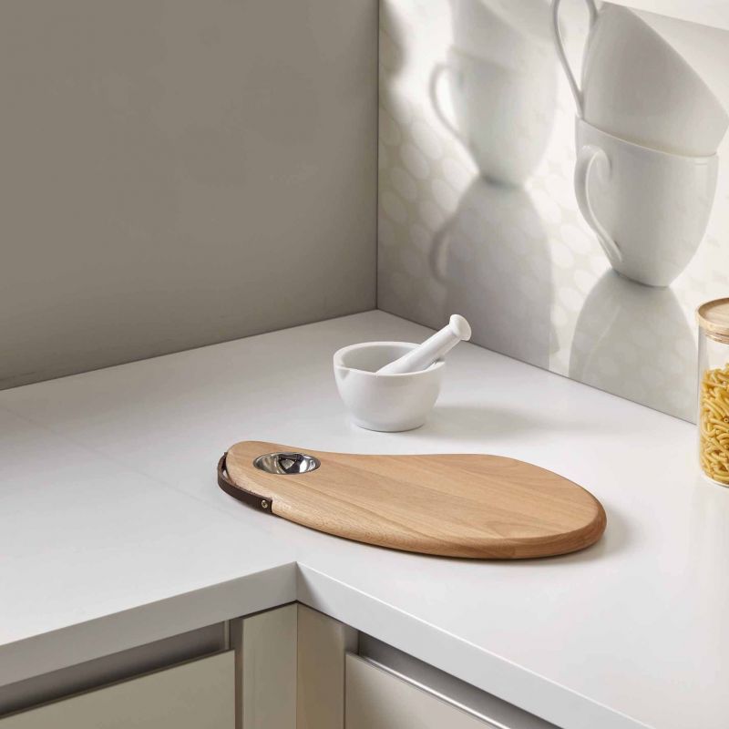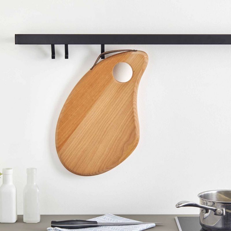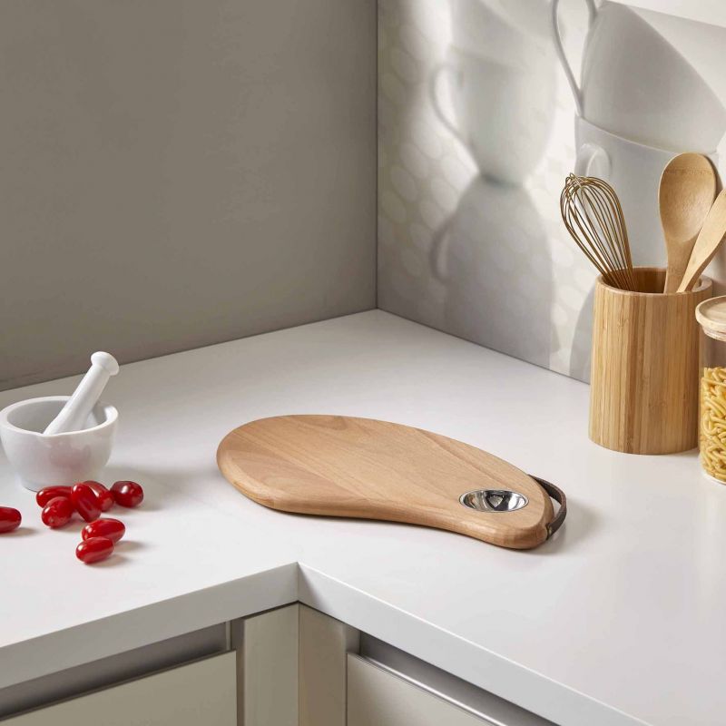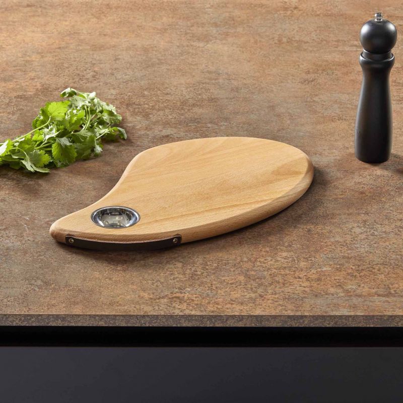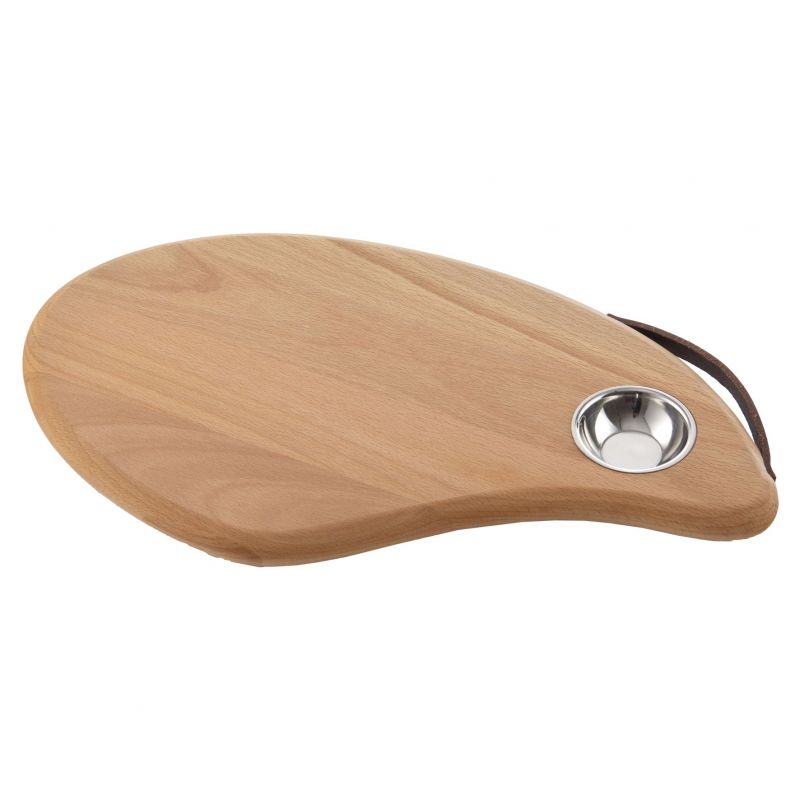 Planche à découper 'La Palette' - Hêtre huilé - 423x254mm - Coupelle à jus amovible en inox - Poignée en cuir pour suspendre - fourni avec patins antidérapants - Livré huilé avec notice d'entretien