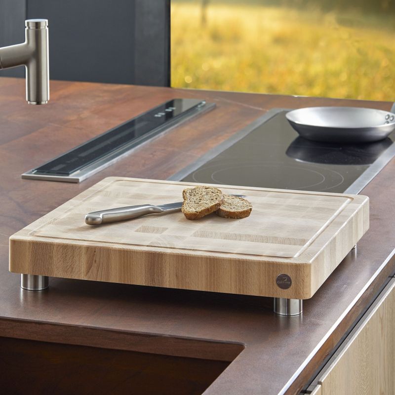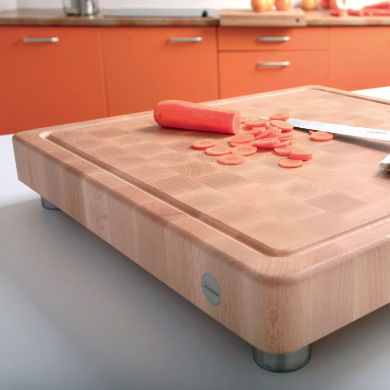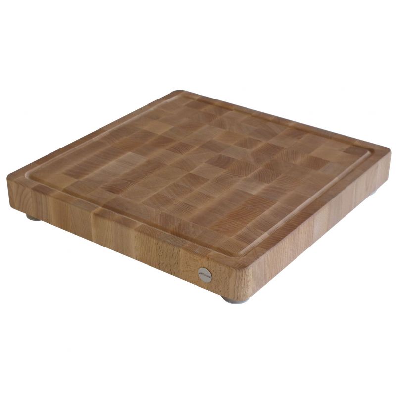 Planche billot - Hêtre en bois de bout avec 4 pieds en inox - 450x450x50mm