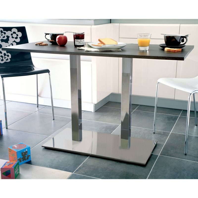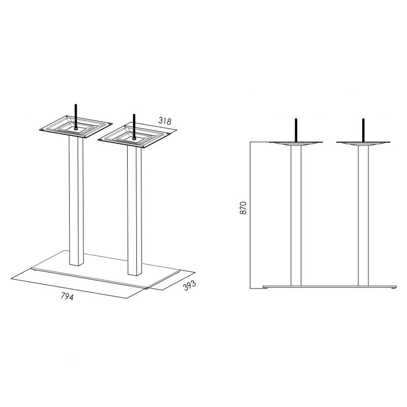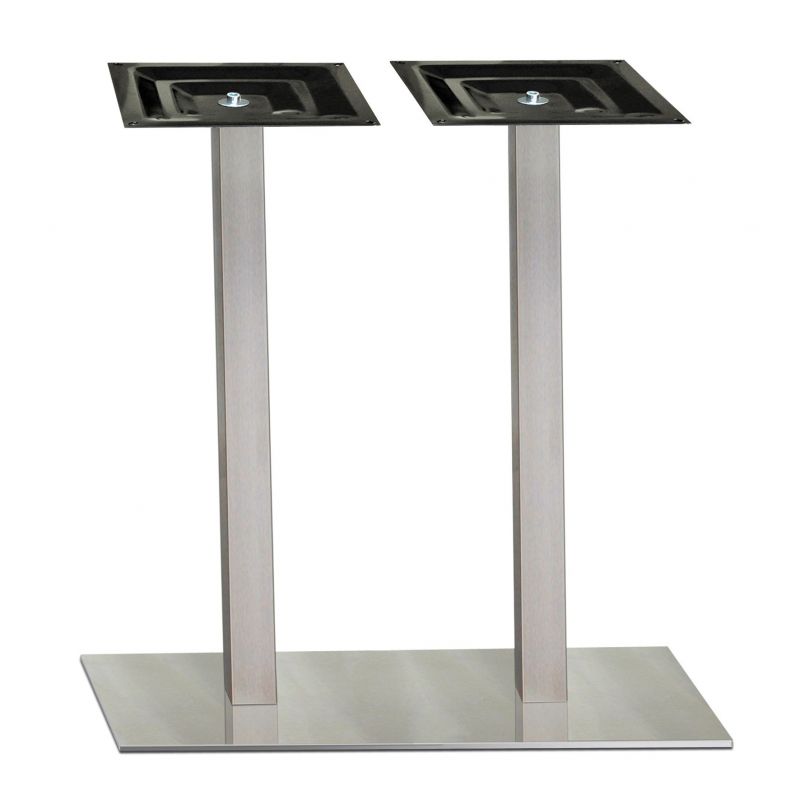 Pied double central carré en acier - H. 870mm - finition inox brossé