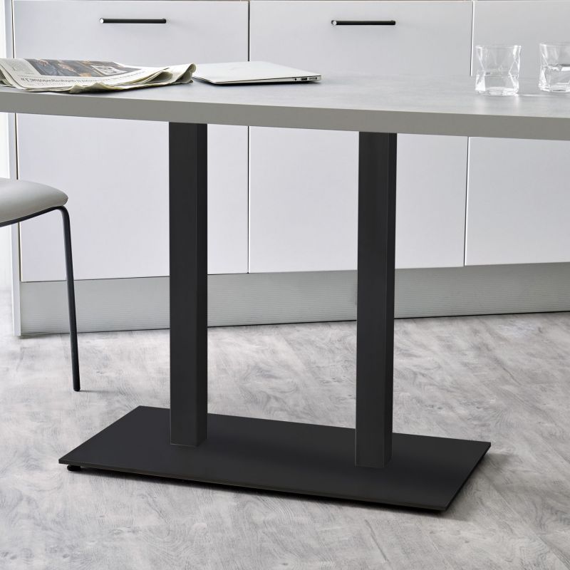 Pied double central carré en acier - H. 870mm - finition noir mat