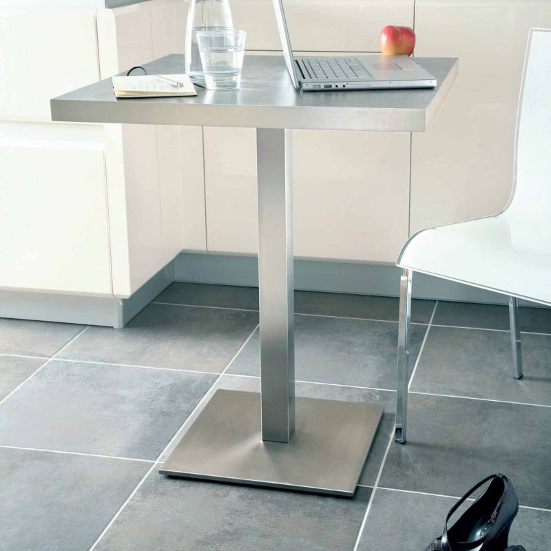 Pied central carré - H. 730mm - socle de 600mm - pied de 80mm - pour plateau rond de diamètre 1000mm maximum ou carré de 1000 x 1000mm maximum - finition inox brossé