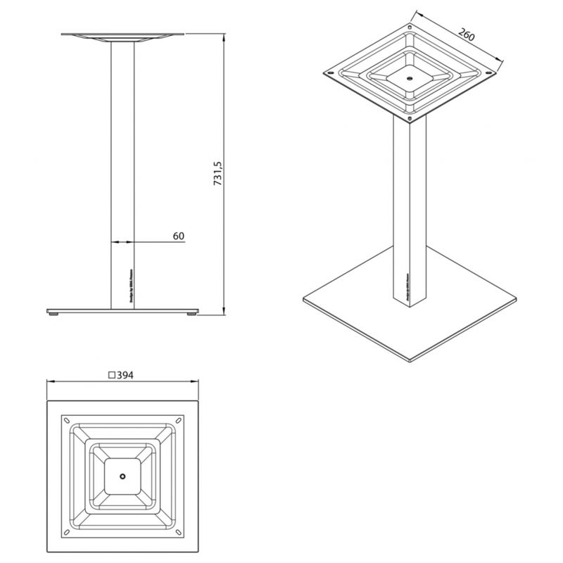 Pied central carré - H. 730mm - socle de 400mm - pied de 60mm - finition noir