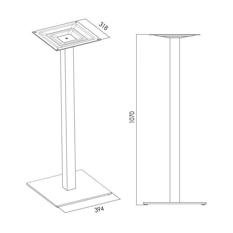 Pied central carré - H. 1070mm - socle de 400mm - pied de 60mm - pour plateau rond de diamètre 800mm maximum ou carré de 700 x 700mm maximum - finition inox brosséPied central carré en acier