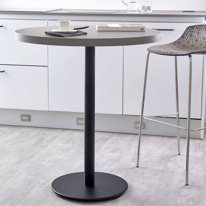 Pied central rond - H. 730mm - socle de 600mm - pied de 80mm - pour plateau rond de diamètre 1000mm maximum ou carré de 900 x 900mm maximum - finition noir
