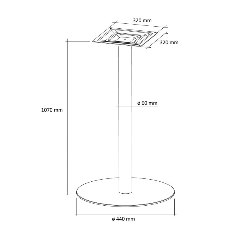 Dimensions : Diam.socle 440 mm Diam. pied 60 mm H. 1070 mm support de fixation 320 x 320 mm