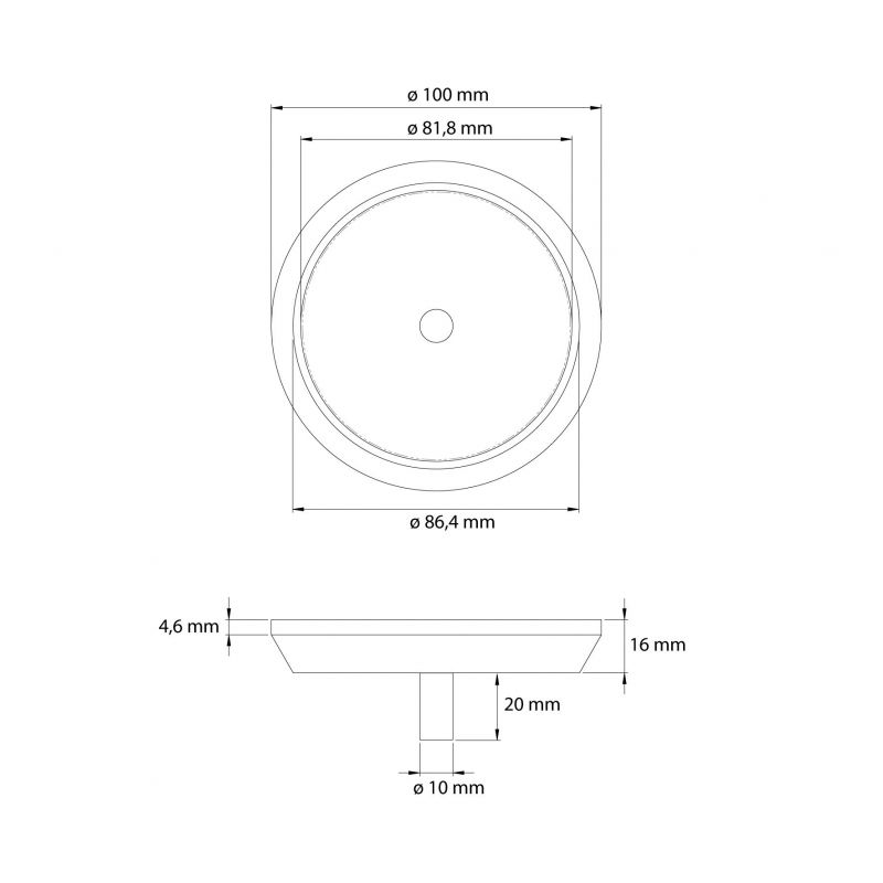 Platine pour fixer un plateau en verre sur le pied central rond de diamètre 80mm