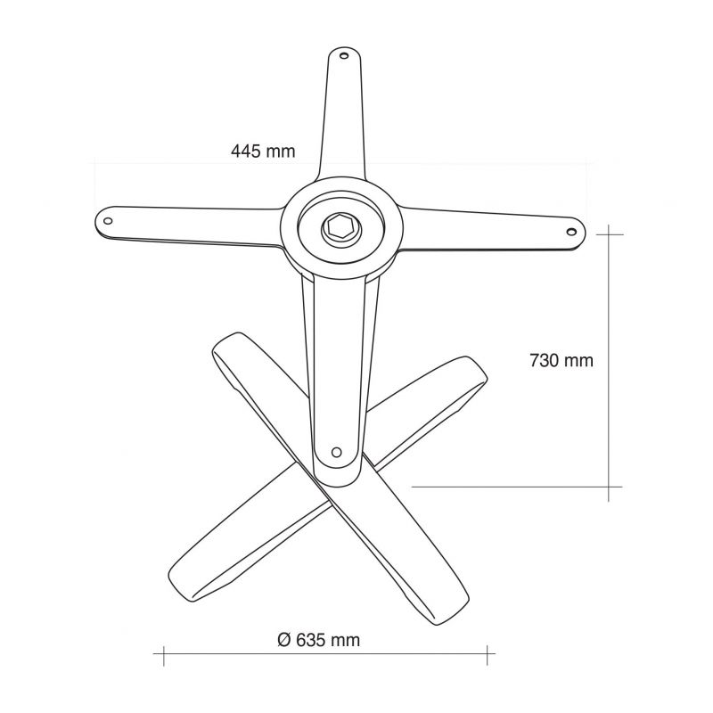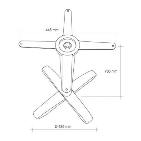 Dimensions : D. socle 635 mm D. pied 80 mm H. 730 mm support de fixation 445 x 445 mm