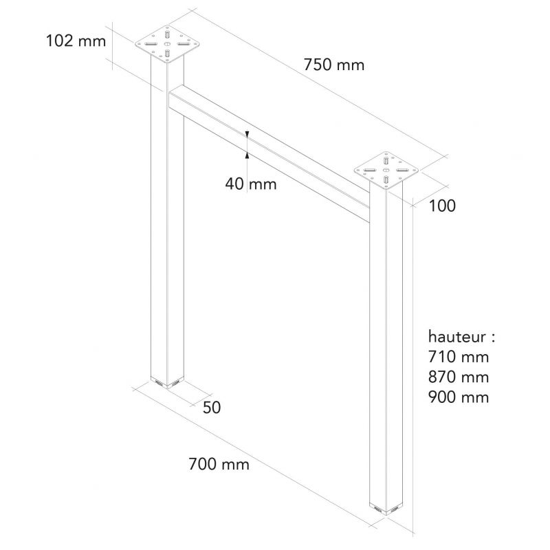 Pied H en acier - profil carré de 50 x 50 - H. 900mm - finition noir mat (RAL 9005)