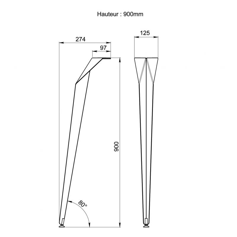 Lot de 2 Pieds ORIGAMI - Finition Noir mat - Hauteur 900mm