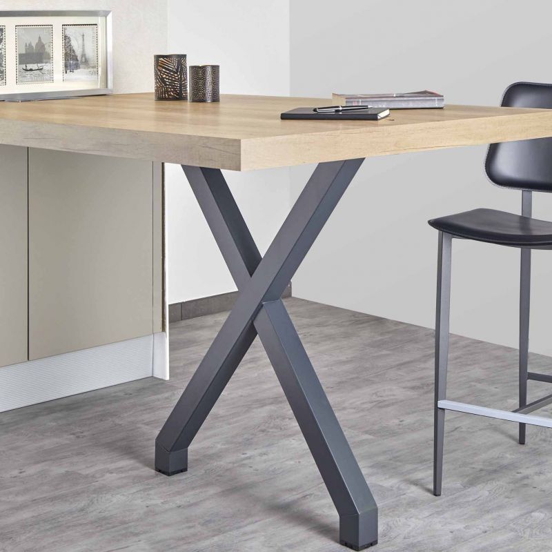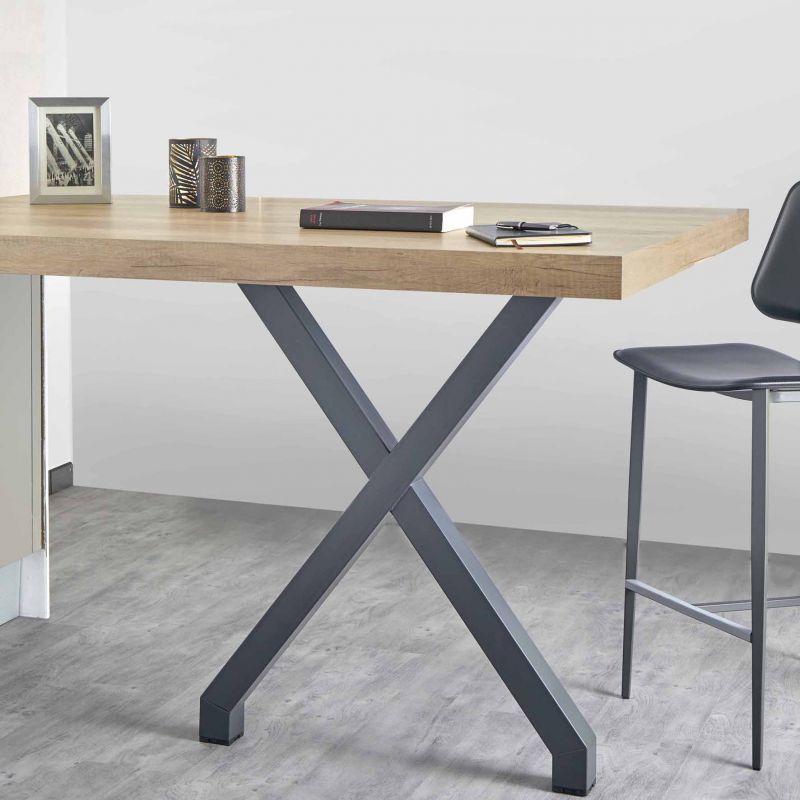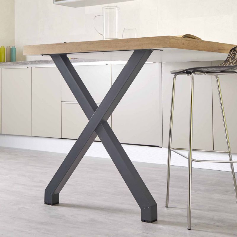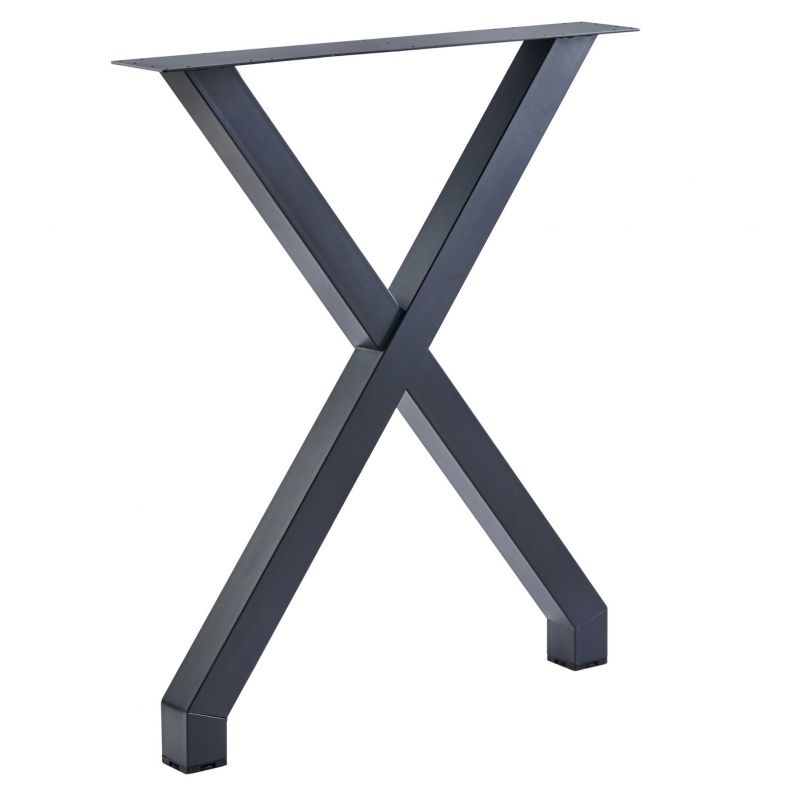 Pied X en acier - profil carré de 60 x 60 - H. 870mm - platine soudée de 750 x 120mm - finition gris anthracite (RAL 7016)
