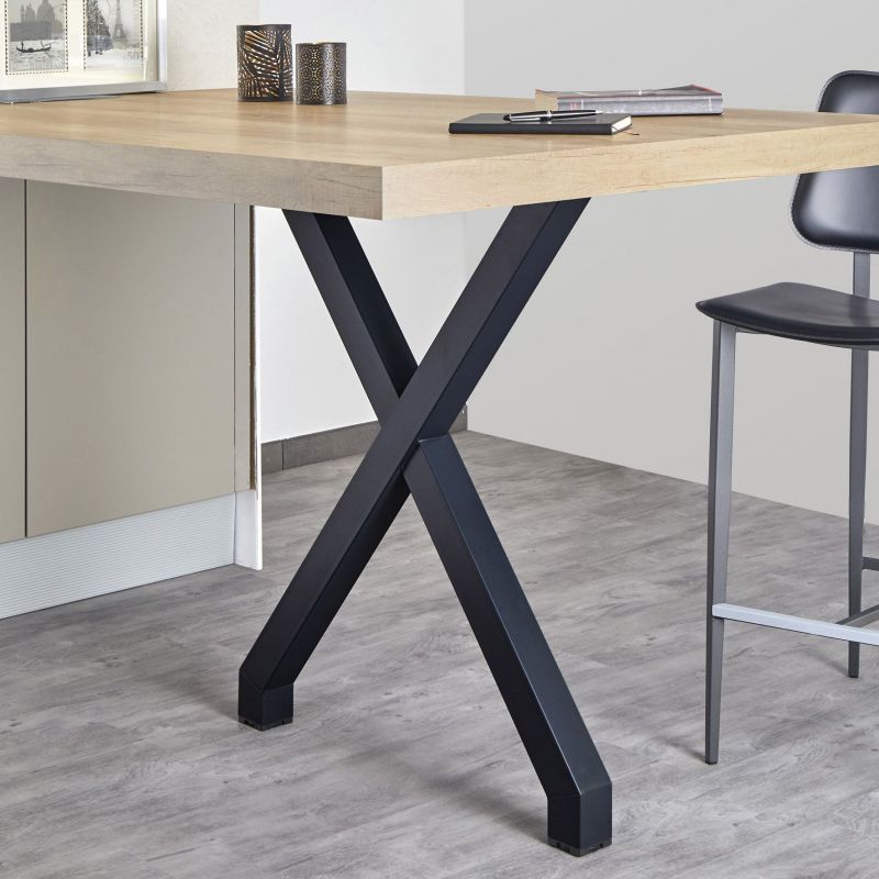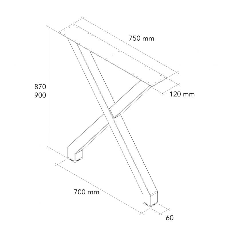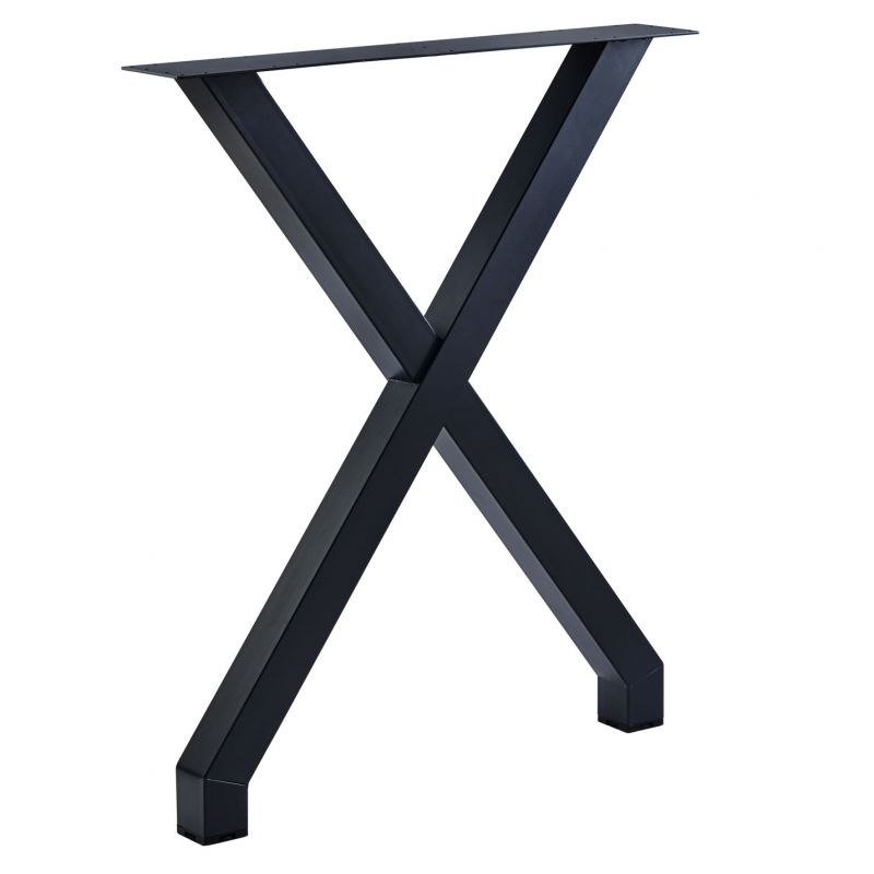 Pied X en acier - profil carré de 60 x 60 - H. 900mm - platine soudée de 750 x 120mm - finition noir mat (RAL 9005)