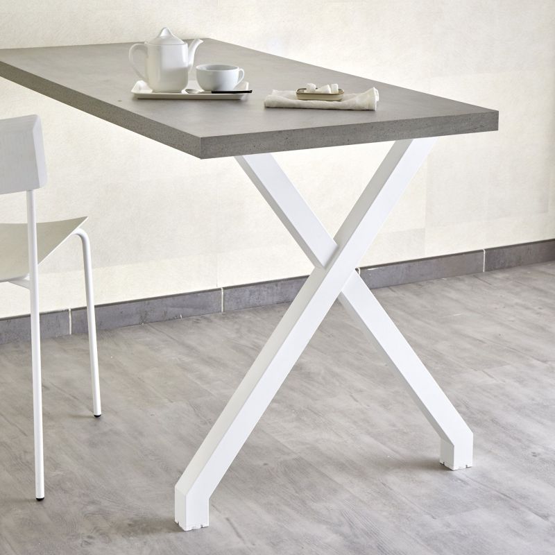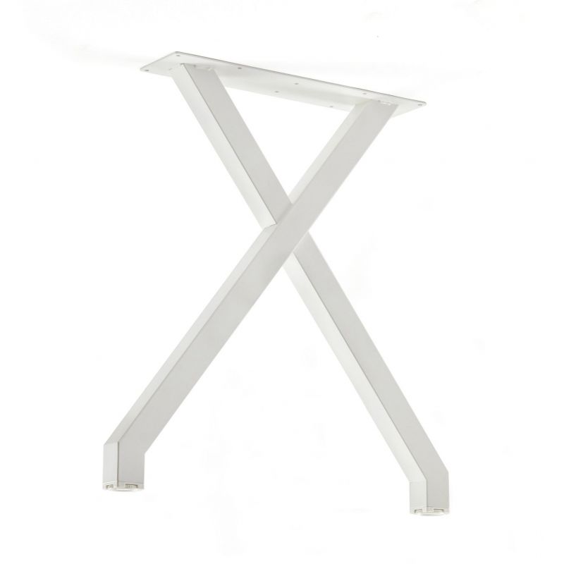 Pied X en acier - profil carré de 50 x 50 - H. 720mm - platine soudée de 520 x 120mm - finition blanc mat (RAL 9016)