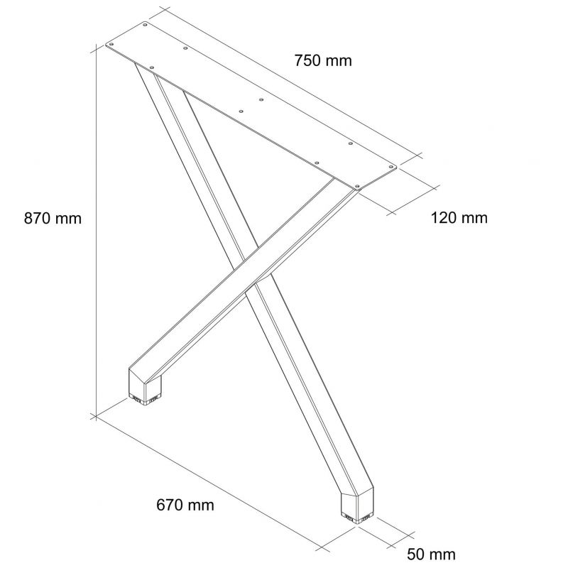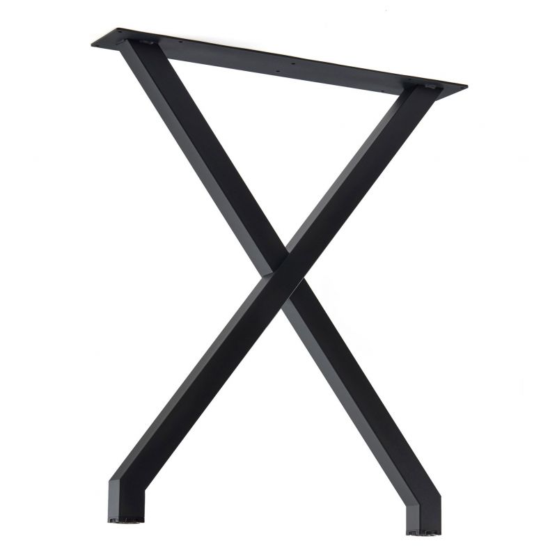 Pied X en acier - profil carré de 50 x 50 - H. 870mm - platine soudée de 750 x 120mm - finition noir mat (RAL 9005)