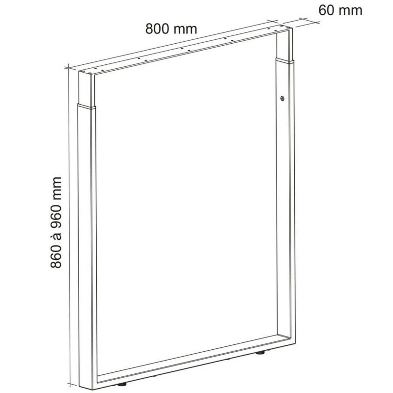 Pied rectangulaire télescopique de 800mm de large - hauteur réglable de 860 à 960mm - finition noir mat