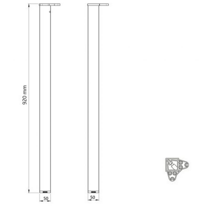 Pied de table et de snack carré en acier - 50 x 50mm - hauteur 920mm - finition noir mat (RAL 9005)
