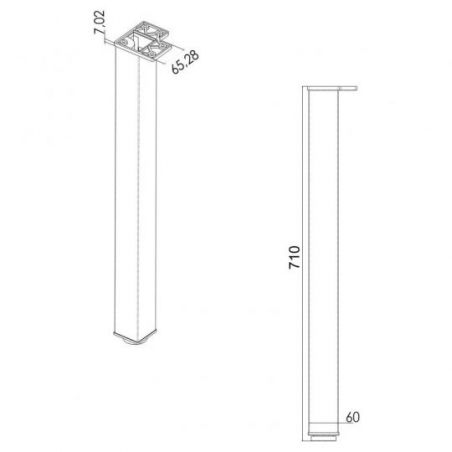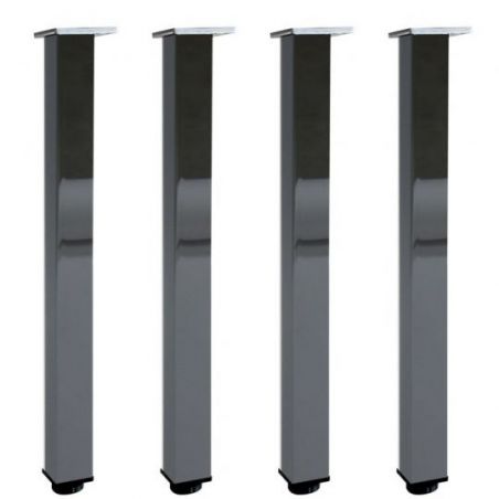 Lot de 4 Pieds de table et de snack carré en acier - 60 x 60mm - hauteur 710mm - finition chrome