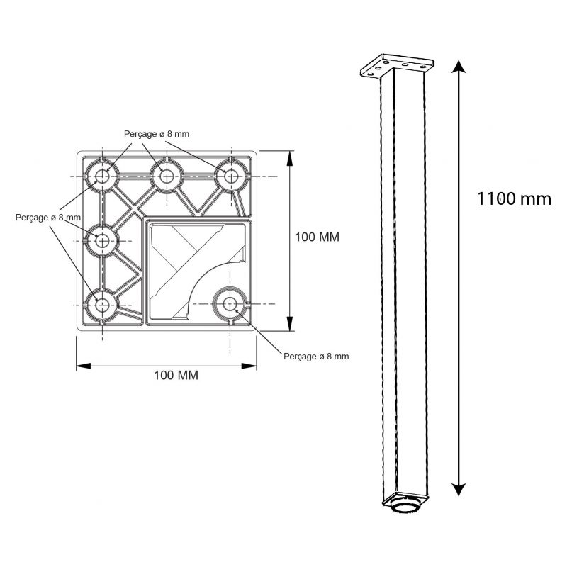 Pied de table et de snack carré en acier - 60 x 60mm - hauteur 1100mm - finition inox brossé