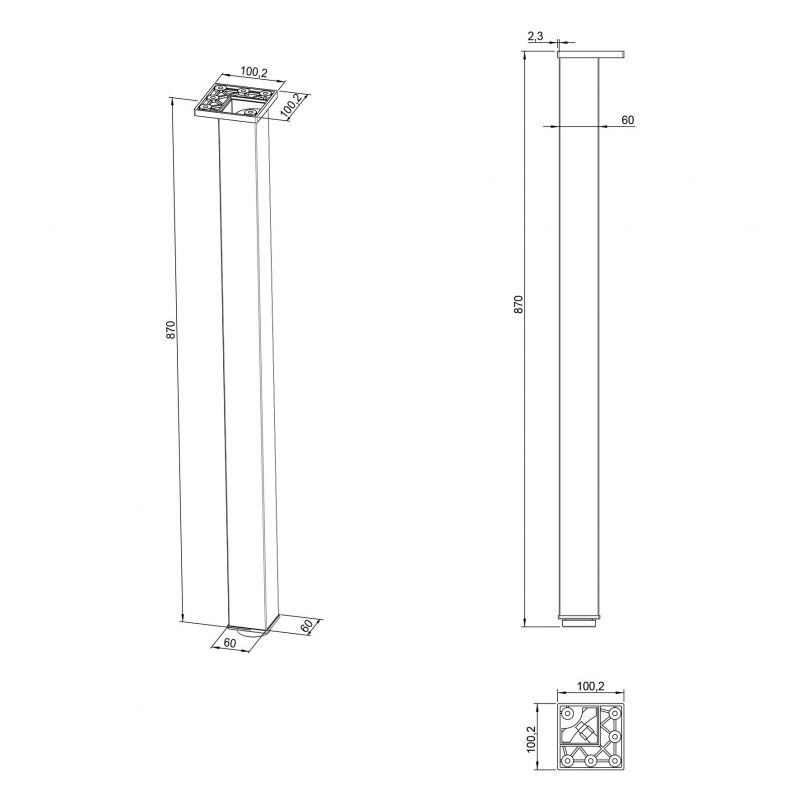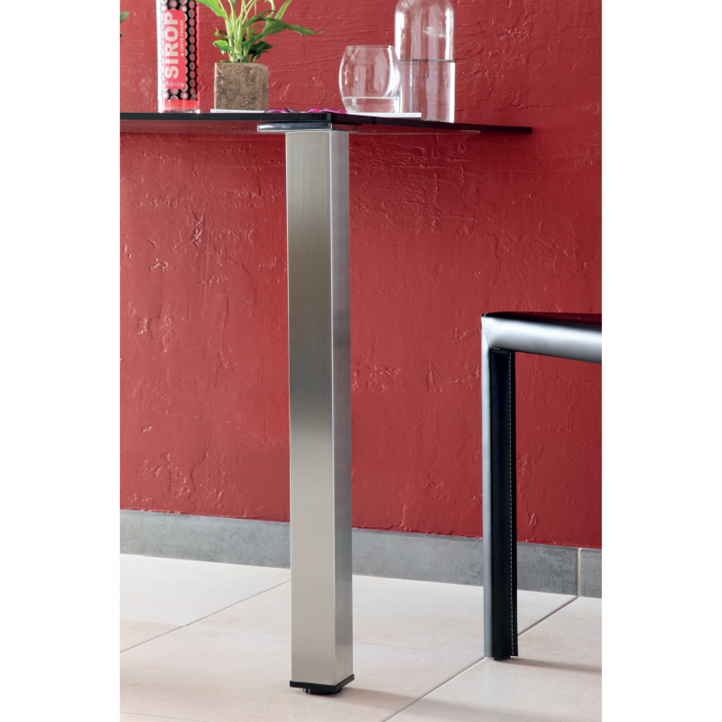 Pied carré en acier inoxydable AISI 304 - 60 x 60mm - hauteur 870mm - finition inox brossé