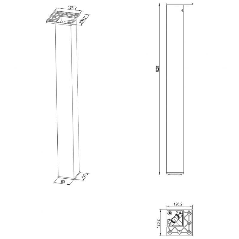 Pied carré de table et de snack en acier - 80 x 80mm - H. 820mm - finition inox brossé