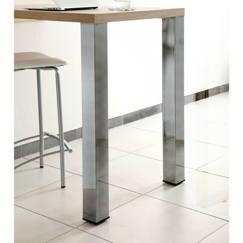 Pied carré de table et de snack en acier - 80 x 80mm - H. 860mm - finition inox brossé