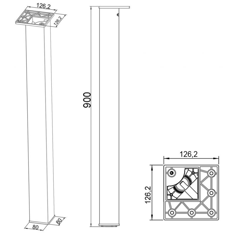 Pied carré de table et de snack en acier - 80 x 80mm - H. 900mm - finition acier brut