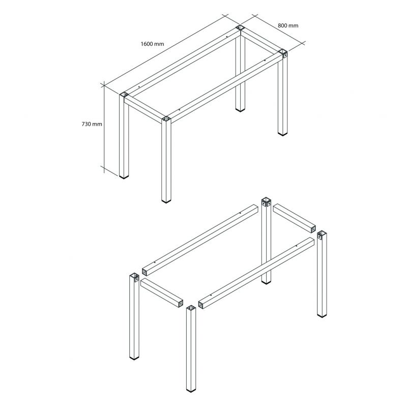Kit pour structure de table- Composé de 4 pieds, 2 traverses, 2 longerons- Longueur 1600mm - Finition noir mat