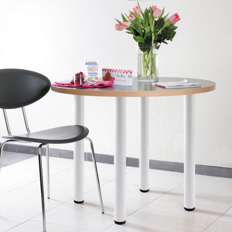 Lot de 4 Pieds ronds de table et de snack en acier - H. 710mm - diamètre de 60mm - finition blanc - Vendu par 4