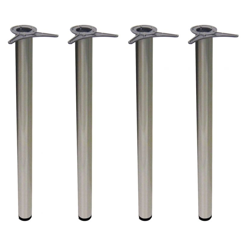 Lot de 4 Pieds ronds de table et de snack en acier - H. 710mm - diamètre de 60mm - finition inox brossé