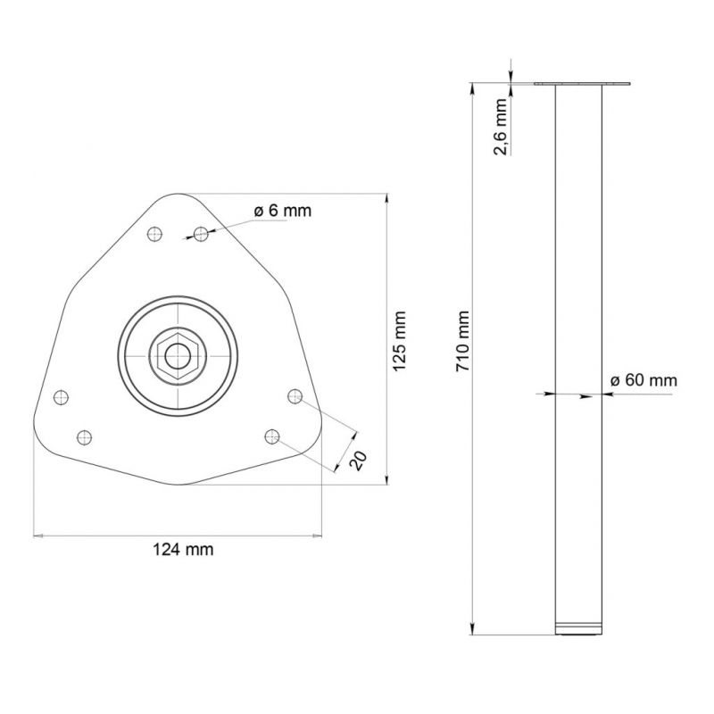 Pied rond de table et de snack en acier - H. 710mm - diamètre de 60mm - finition chromeDescriptif :