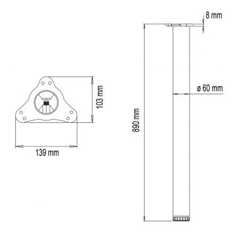 Pied rond de table et de snack en acier - H. 890mm - diamètre de 60mm - finition noir