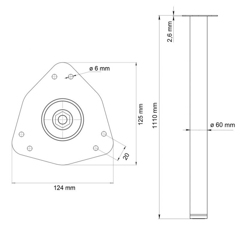 Pied rond de table et de snack en acier - H. 1100mm - diamètre de 60mm - finition noir
