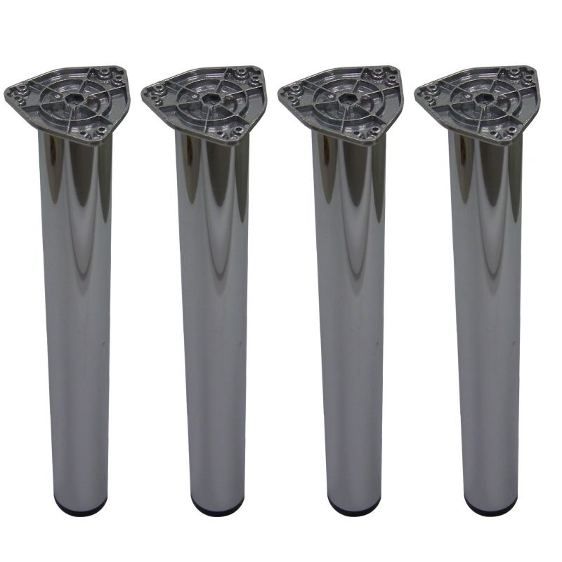 Lot de 4 Pieds ronds de table et de snack en acier - H. 710mm - diamètre de 80mm - finition chrome