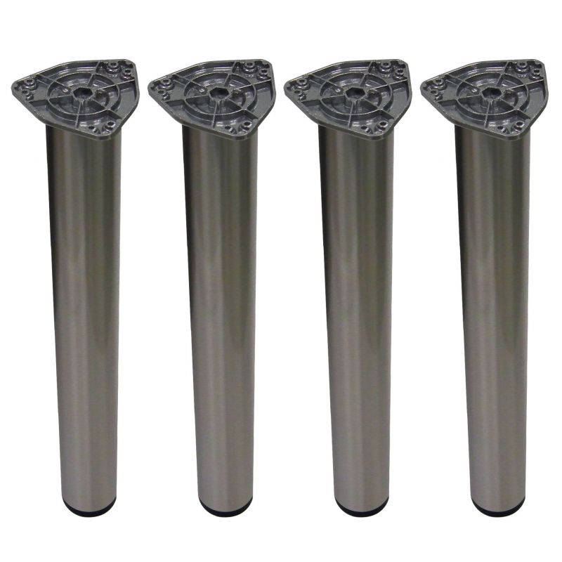 Lot de 4 Pieds ronds de table et de snack en acier - H. 710mm - diamètre de 80mm - finition inox brossé - Vendu par 4