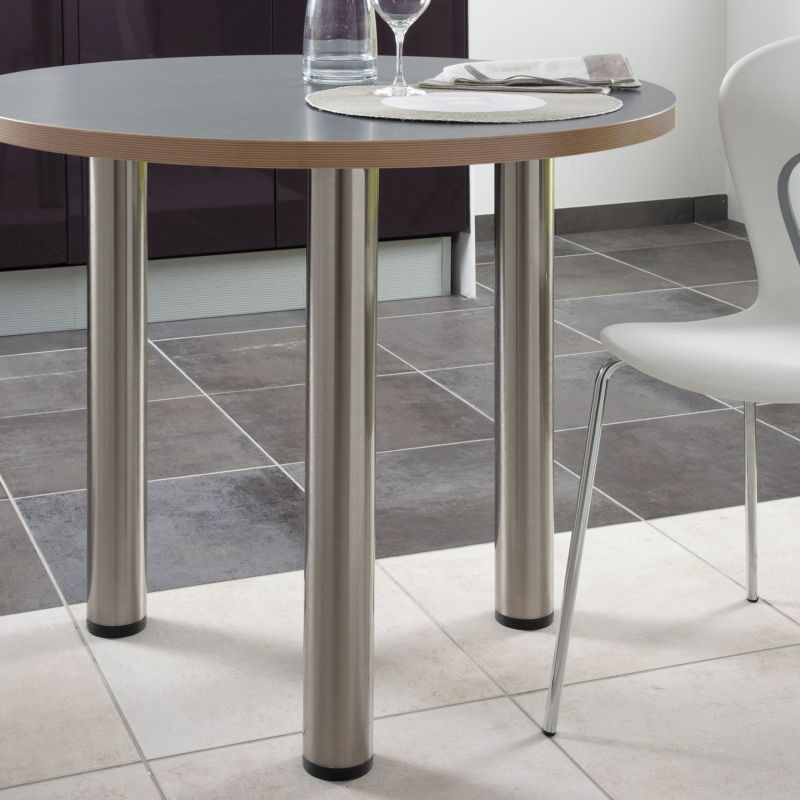 Pied rond de table et de snack en acier - H. 870mm - diamètre de 80mm - finition inox brossé