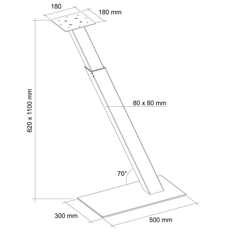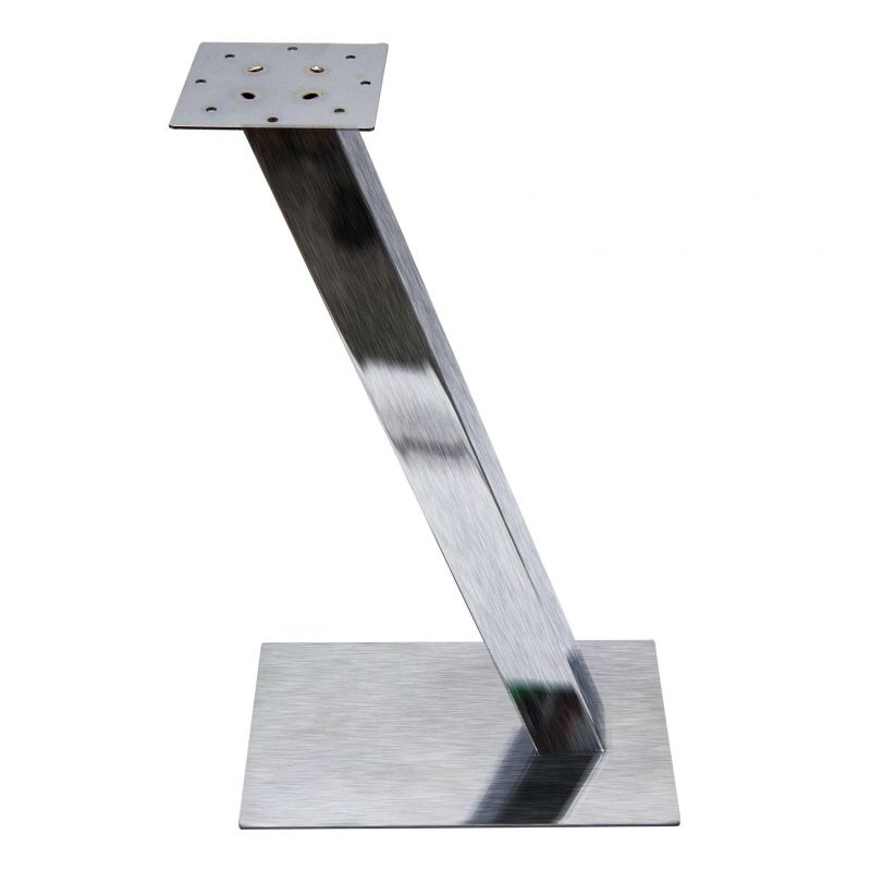 Pied de snack incliné à 70° téléscopique en acier - 80 x 80 - hauteur de 820 à 1100mm - finition inox brossé
